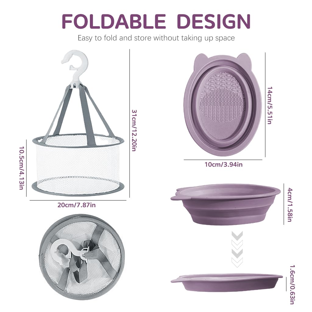 MAYCREATE Makeup Brush Cleaner Mat for Brushes and Sponges with Textured Patterns | Foldable Silicone Cleaning Bowl and Hanging Drying Net