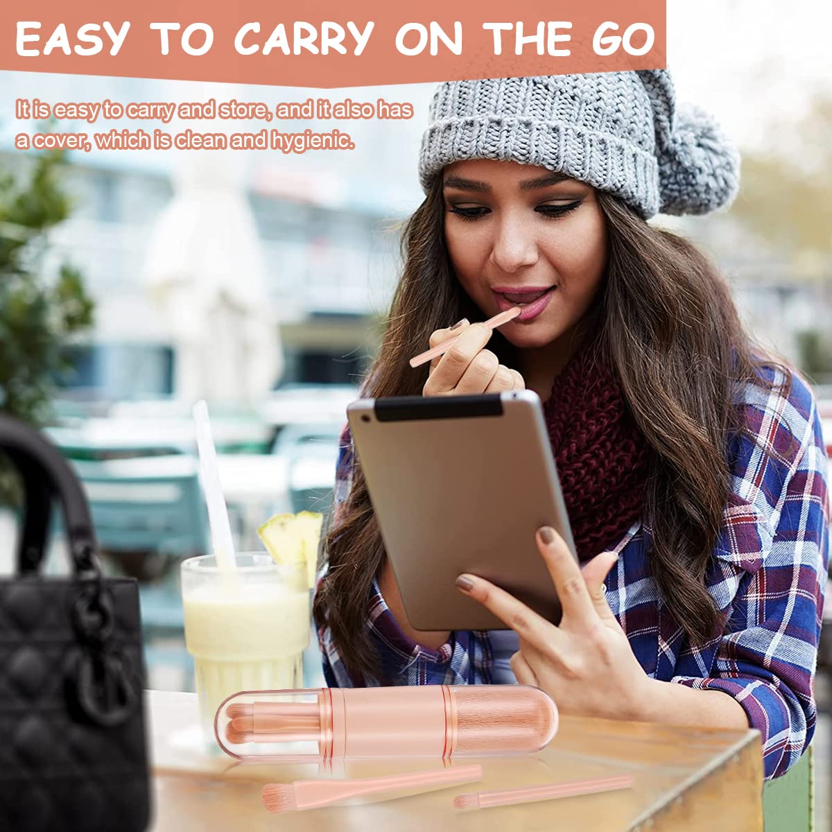 MAYCREATE Makeup Brush Set for Travel with 4 in 1 Retractable Capsule Design | Nude Color