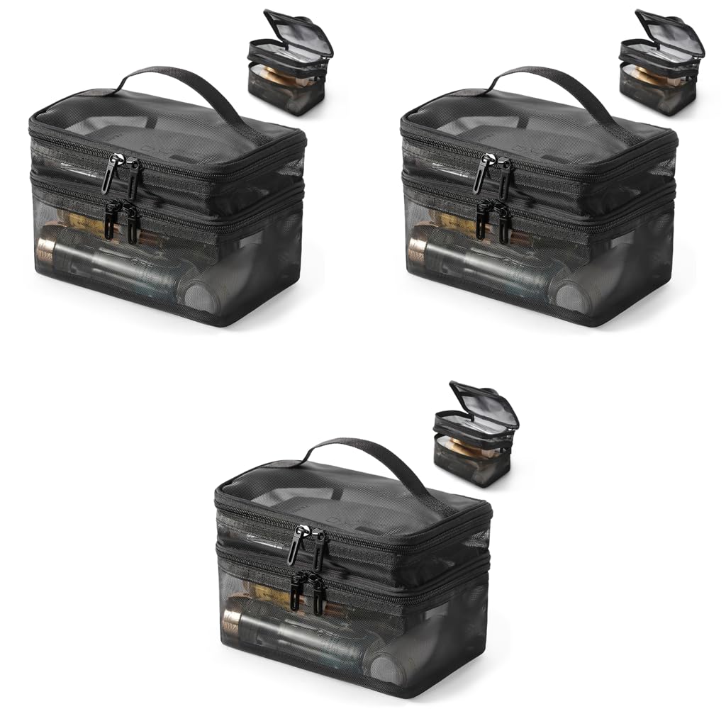MAYCREATE Makeup Pouch Bag for Travel Organization featuring Double Layer Nylon Mesh | 3 PCS Set with Handle