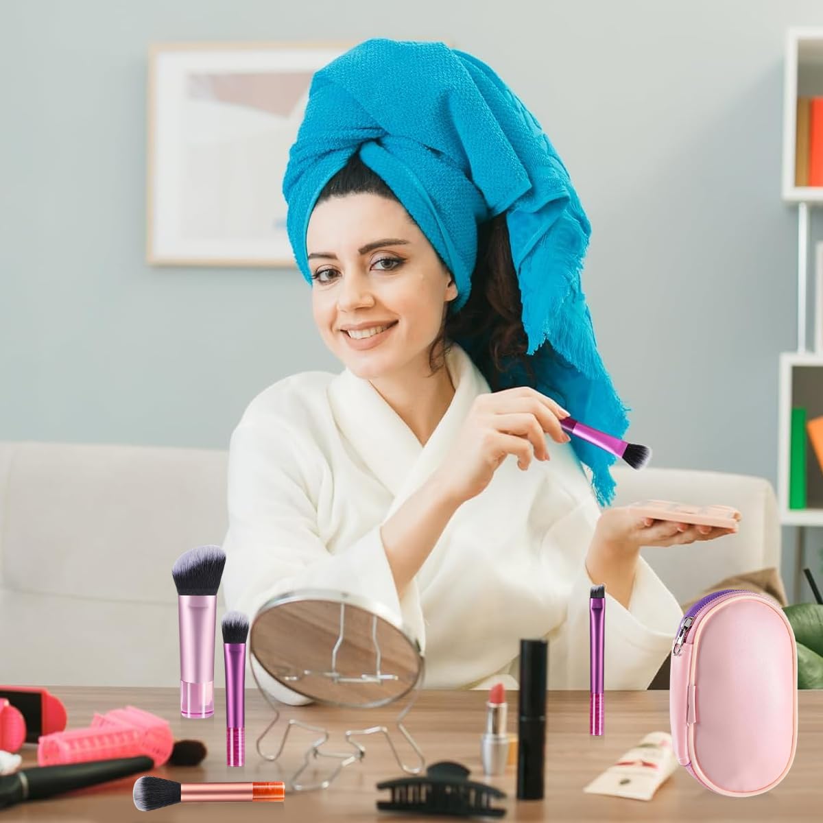 The MAYCREATE® 10pc Travel Makeup Brush Set with Zipper Pouch is a compact and convenient collection of essential makeup tools designed for easy portability and precise application. Crafted with ultra-soft synthetic bristles, each brush delivers smooth, even coverage without absorbing excess product. The shorter handles offer balanced control and comfort, making these brushes ideal for travel or quick touch-ups. Housed in a sleek zipper pouch, the set includes blending, contour, highlighter, and eyeshadow brushes suitable for both beginners and professionals. Perfect for maintaining your beauty routine on the go, this travel-friendly brush kit from MAYCREATE® ensures a clean, organized, and flawless makeup experience wherever you are.