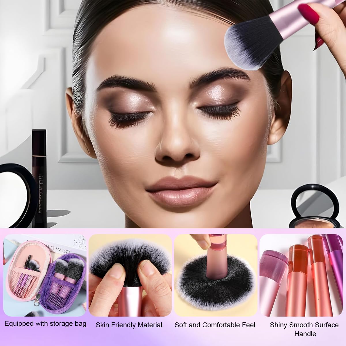 MAYCREATE Travel Makeup Brush Set 10pc with Short Handles and Synthetic Bristles | Zipper Pouch