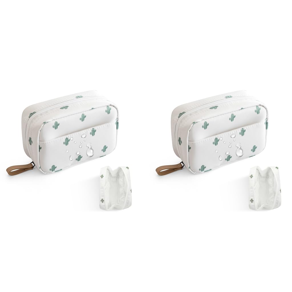 MAYCREATE Small Makeup Pouch Bag Cosmetic Organizer with Lipstick Slots is a compact travel accessory designed for women who want to keep makeup and toiletries neatly arranged. Made from durable waterproof polyester fabric, it protects beauty essentials and brushes from moisture and spills while ensuring long-lasting use. The stylish white cactus print adds a fashionable touch, combining practicality with modern appeal. Its main zipper pouch, inner compartments, and open section provide organized storage for brushes, palettes, and everyday toiletries, all secured by a smooth-gliding zipper. Ideal for travel or daily organization, this makeup pouch offers portable convenience and reflects MAYCREATE’s focus on functional, reliable design for modern lifestyles.
