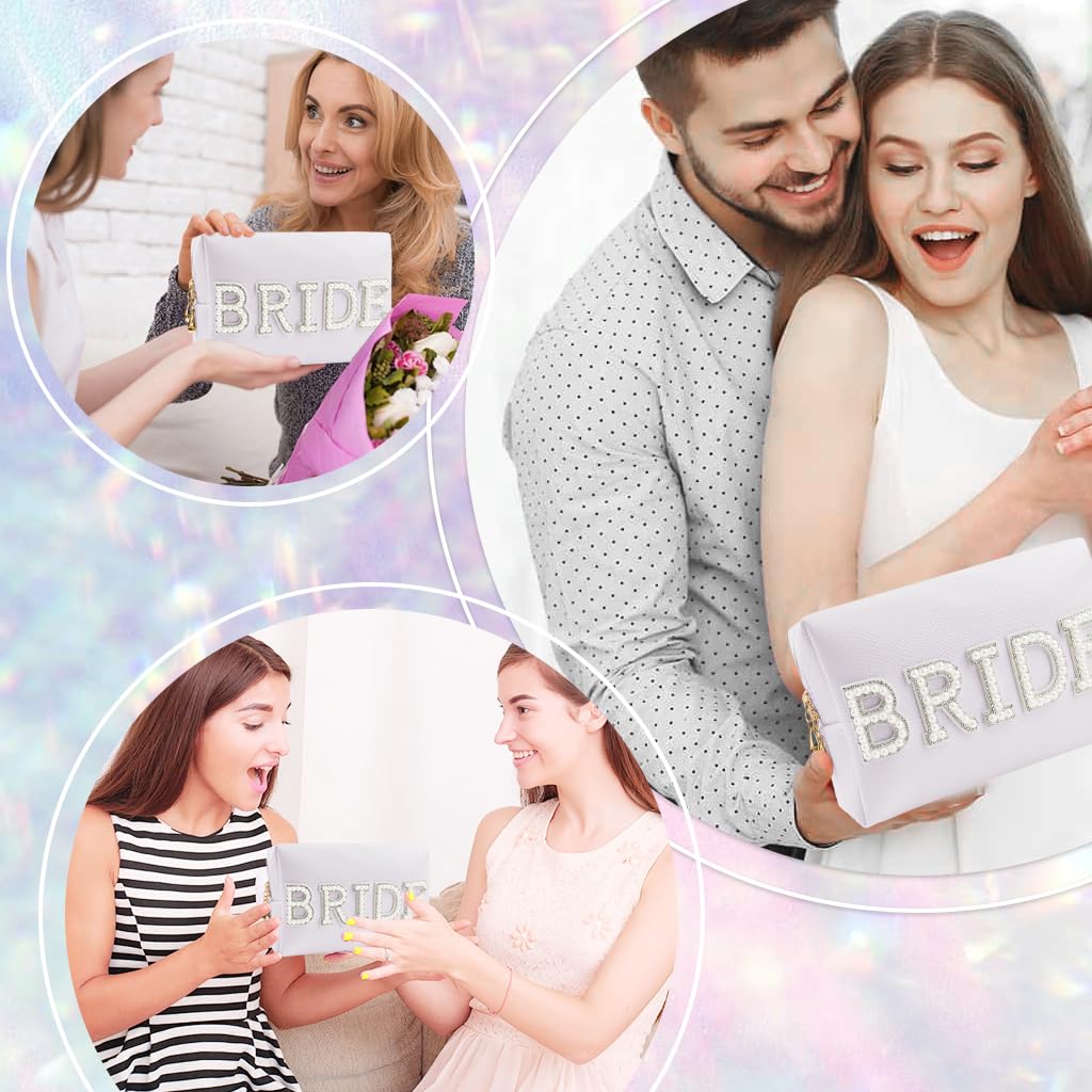 MAYCREATE Bride Makeup Pouch for Weddings featuring Pearl Rhinestones and Zipper Closure 20.5x8x12.5cm