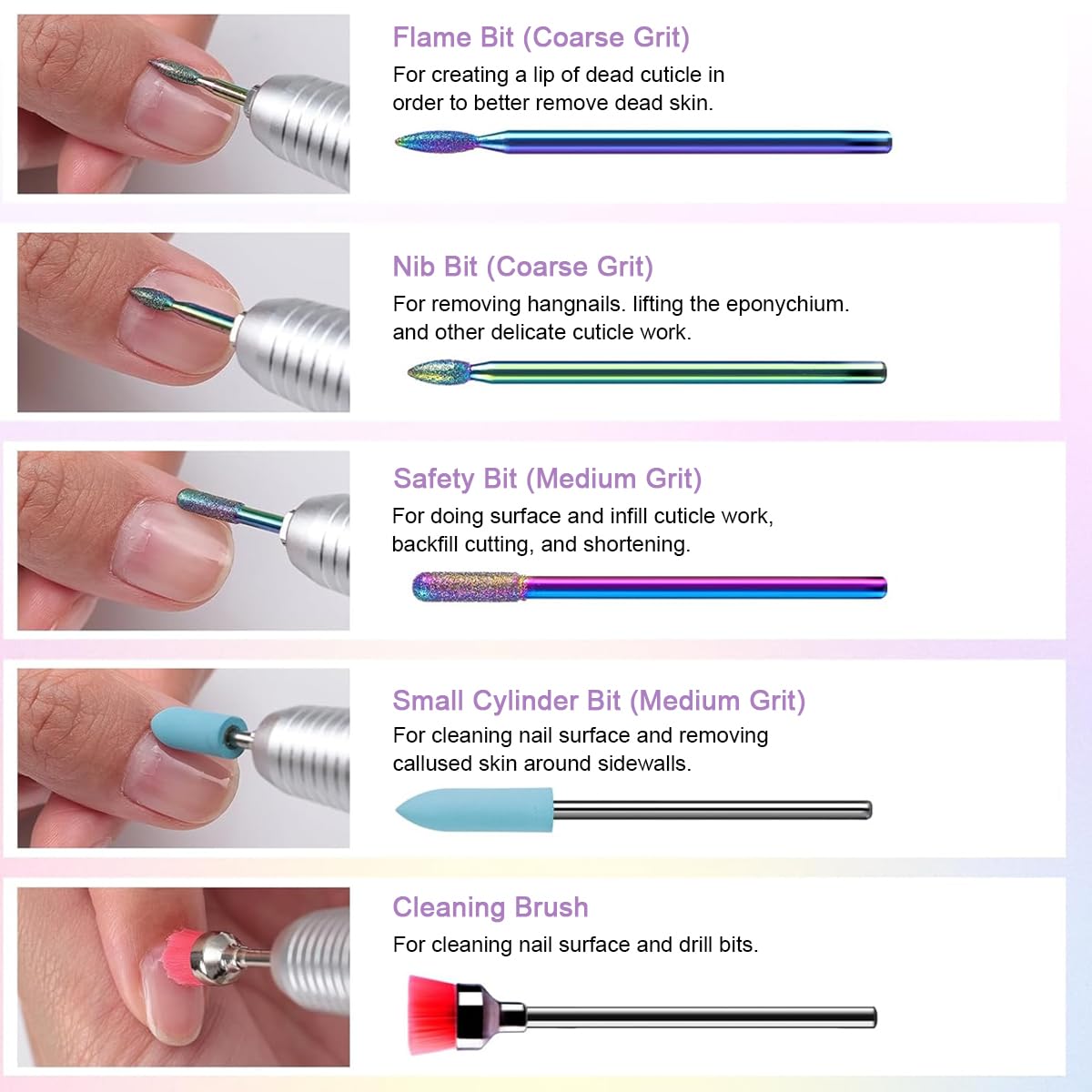 - Includes 24 interchangeable drill bits with 3/32" shanks compatible with most electric nail drills.