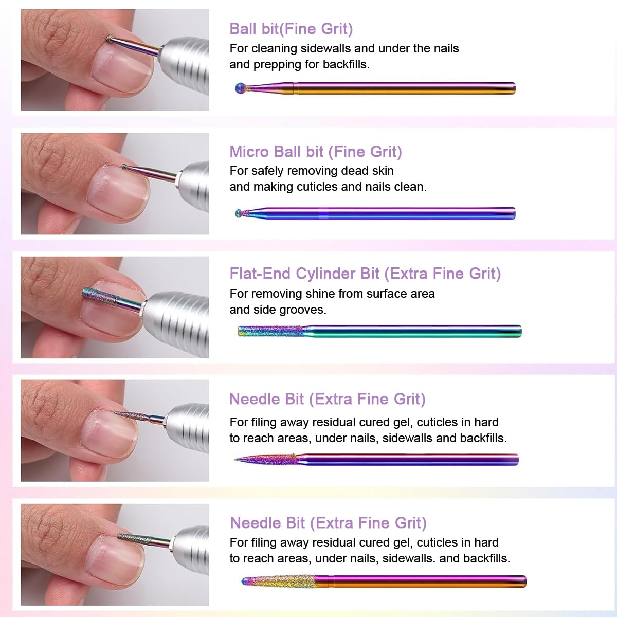 MAYCREATE 24Pcs Nail Drill Bit Set offers a versatile solution for shaping, cleaning, and buffing acrylic, gel, or dip powder nails with 3/32" universal compatibility for most nail drills. Crafted from premium ceramic, tungsten steel alloy, and diamond materials, these bits provide a balanced combination of gentle heat control, durability, and precision. Designed for both professional salon and home use, the set includes varied bit types that enhance efficiency and deliver consistent results across all nail preparation tasks. Users can rely on MAYCREATE for professional-grade tools that improve nail artistry performance and maintain quality while ensuring a smooth, safe manicure experience.
