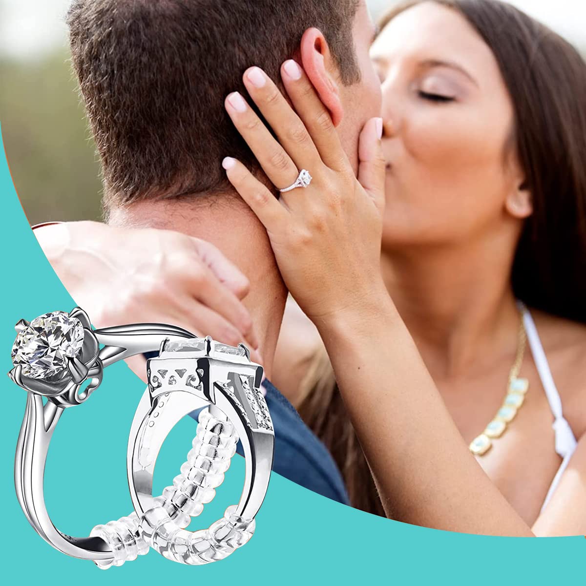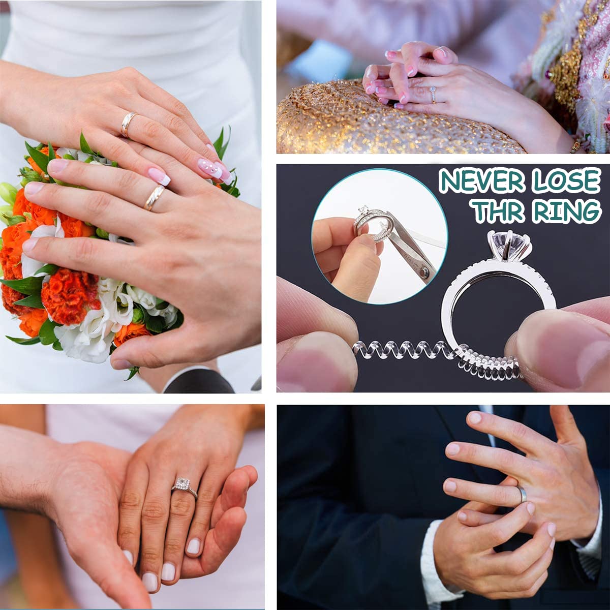• SPIRAL RING ADJUSTER:4pcs spiral ring adjuster,10cm/per,cuttable. It won't affect the beauty of the ring, the adjuster is transparent spiral cord, simple design matching classic color, and the spiral deisgn is easy for you to circling it around the ring, convenient to use and remove.