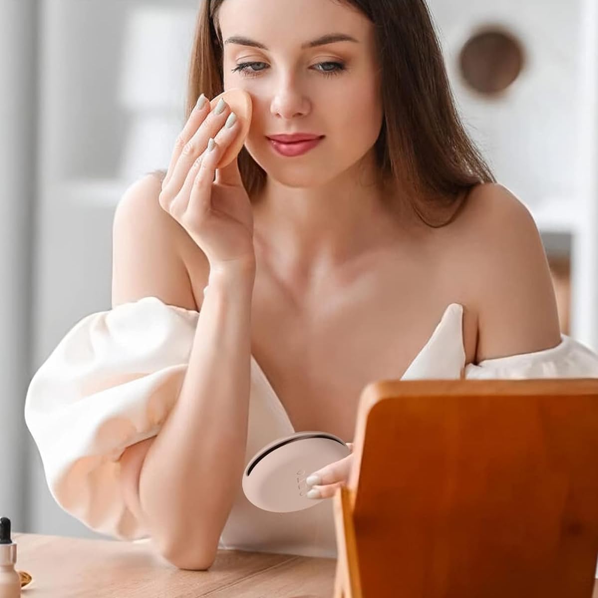 MAYCREATE Silicone Powder Puff Holder offers a practical solution for storing and protecting your makeup sponge or puff during daily use or travel. Crafted from soft, skin-friendly silicone, this circular squeeze-to-open case ensures easy access and hygienic storage while preventing moisture buildup. Its compact 75×62 mm size makes it easy to carry in a makeup bag, keeping puffs organized and ready for application. The durable silicone material is simple to clean by rinsing or wiping, maintaining long-lasting quality. Designed to accommodate most regular-sized powder puffs or air cushion puffs, it provides a clean, efficient, and reliable way to protect beauty tools while reflecting MAYCREATE’s focus on functionality and quality.