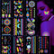 • GREAT AFFORDABLE TEMPORARY TATTOOS STICKER: 10 sheets Glow UV Neon temporary tattoos, each is 17*9.6cm in size, each sheet tattoo sticker has various small tattoo stickers, over 80-100 tattoos patterns in total. These night glow temporary tattoo stickers will present color pattern under UV light or dark environment.