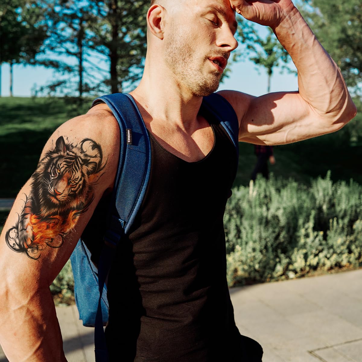 MAYCREATE Temporary Tattoo Sticker Set for Men featuring Tiger and Lion Designs 148x210mm | Waterproof Large Arm Tattoos