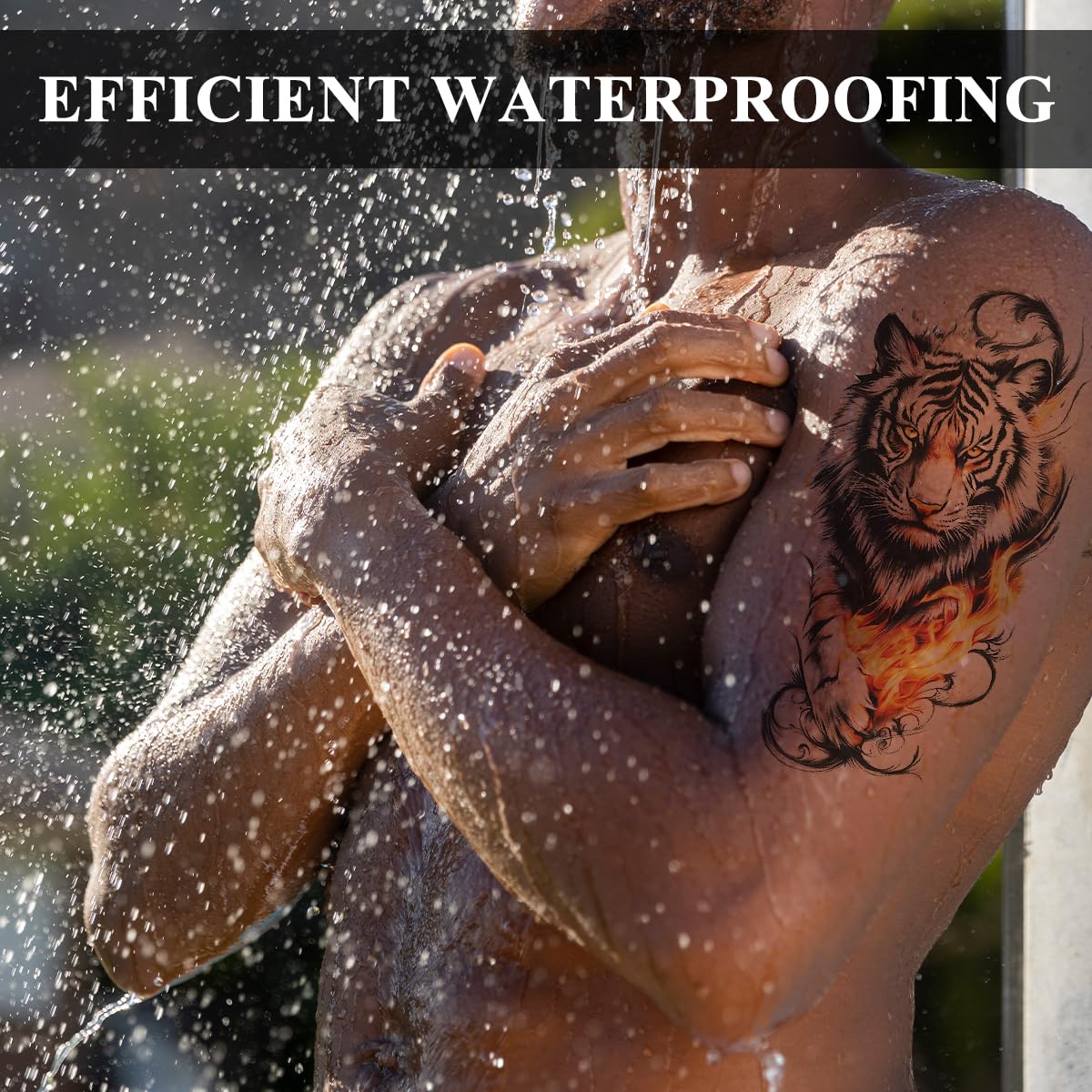 MAYCREATE Temporary Tattoo Sticker For Men Tiger Lion Tattoo Stickers Beast on Arm Waterproof Large Tattoos Sticker Set presents an expressive way to display bold animal artistry on the skin. This tattoo set features strong tiger and lion designs crafted in black ink, symbolizing power and confidence. Each piece measures 148x210mm, providing a striking presence on the arms, shoulders, back, or legs. The waterproof construction ensures durability and resistance to fading. Ideal for temporary body art enthusiasts, the tattoos let users experiment with creative self-expression while maintaining Maycreate’s reputation for quality and reliable skin-safe design.