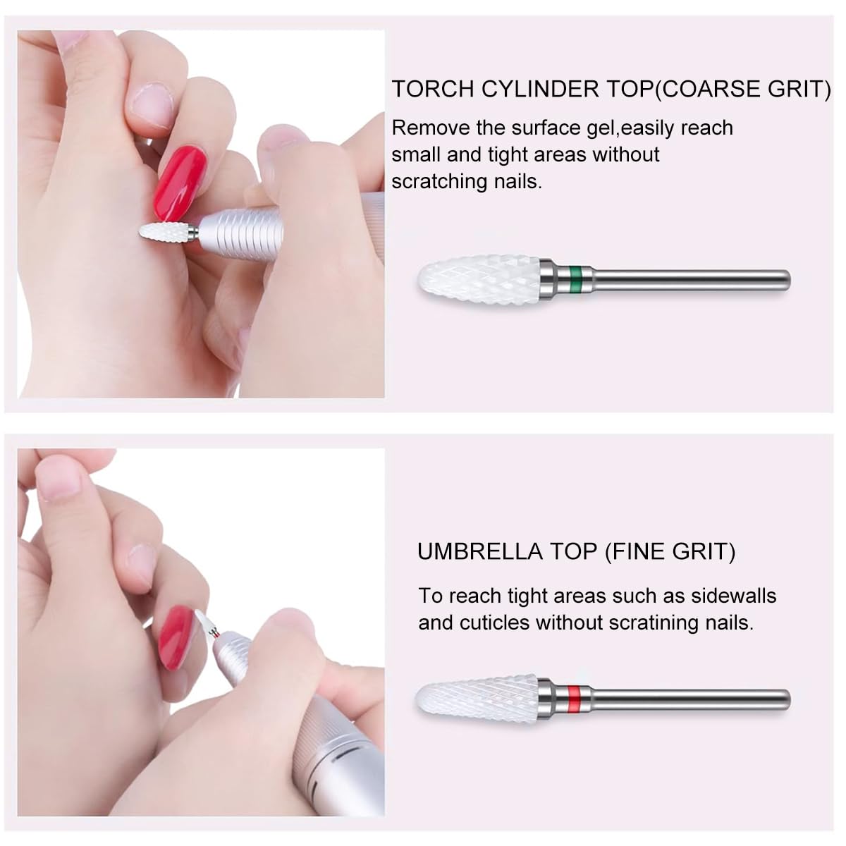 MAYCREATE Ceramic Nail Drill Bits 10 Pcs for Gel Removal and Shaping with 2.35mm Shank