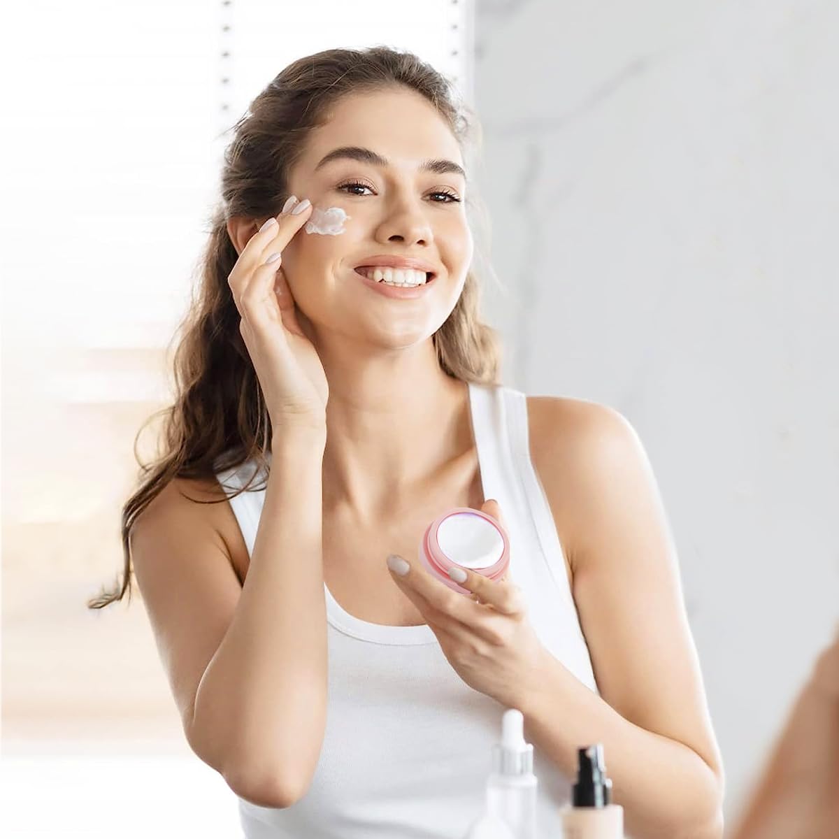 - Leakproof anti-drip screw caps keep lotions and creams securely contained during travel.