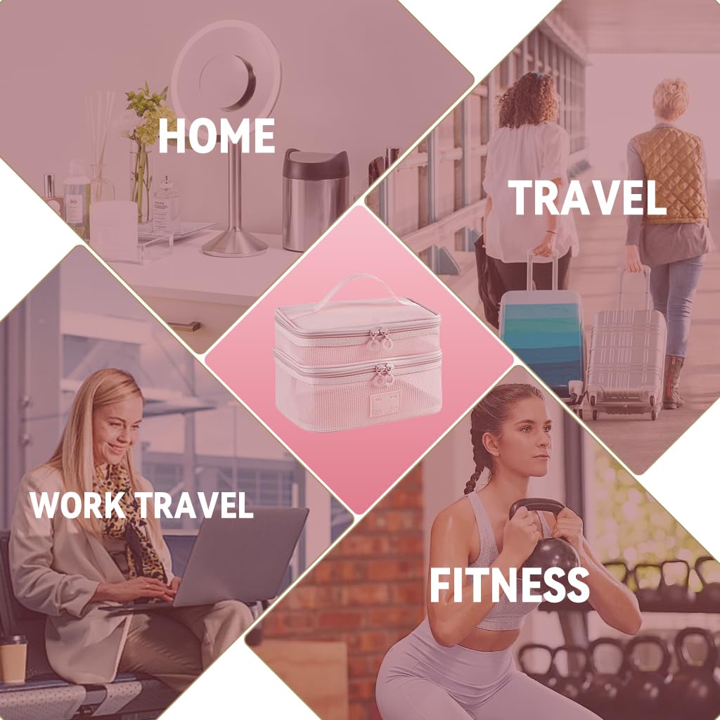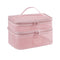 MAYCREATE Makeup Pouch Bag for Travel with Double Layer Organizer Design and Pink Nylon Mesh