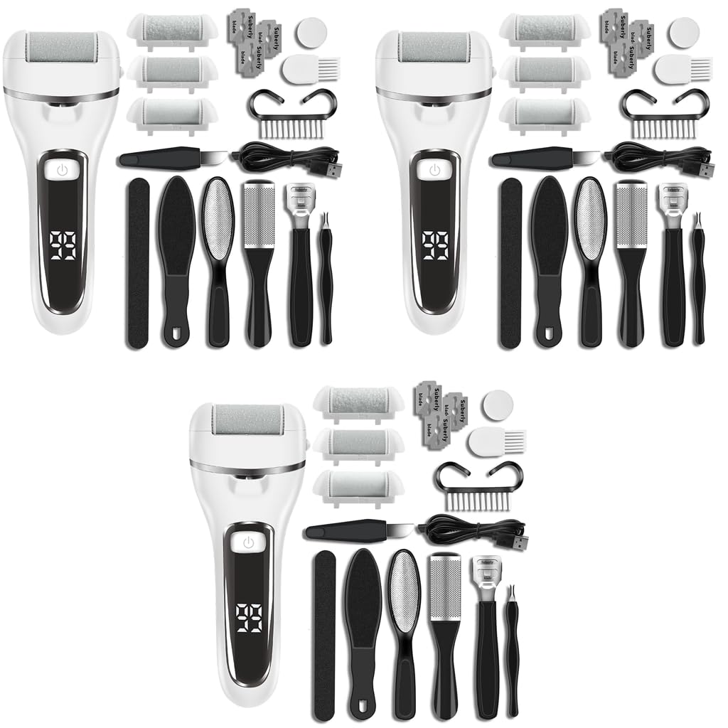 MAYCREATE Electric Callus Remover Pedicure Scrubber is a rechargeable electronic device designed for women who want professional foot care at home. This portable machine effectively removes dead skin and hard calluses from the heels, offering greater comfort and safety than traditional tools such as foot rasps, pumice stones, and callus scalpels. It comes with two replacement rollers to address different levels of roughness and maintain smooth, healthy feet. The ergonomic design allows easy handling while ensuring efficient exfoliation without pain or injury. Ideal for regular use, the MAYCREATE pedicure kit provides a convenient and hygienic solution for keeping feet soft and well-groomed with consistent performance and brand reliability.
