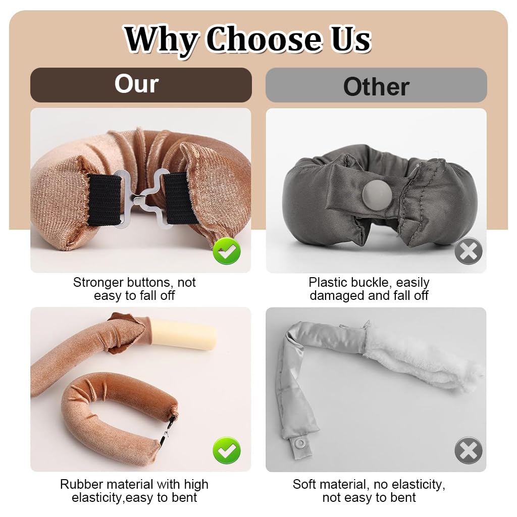 - Flexible curling rods with a secure hook design hold hair firmly overnight.