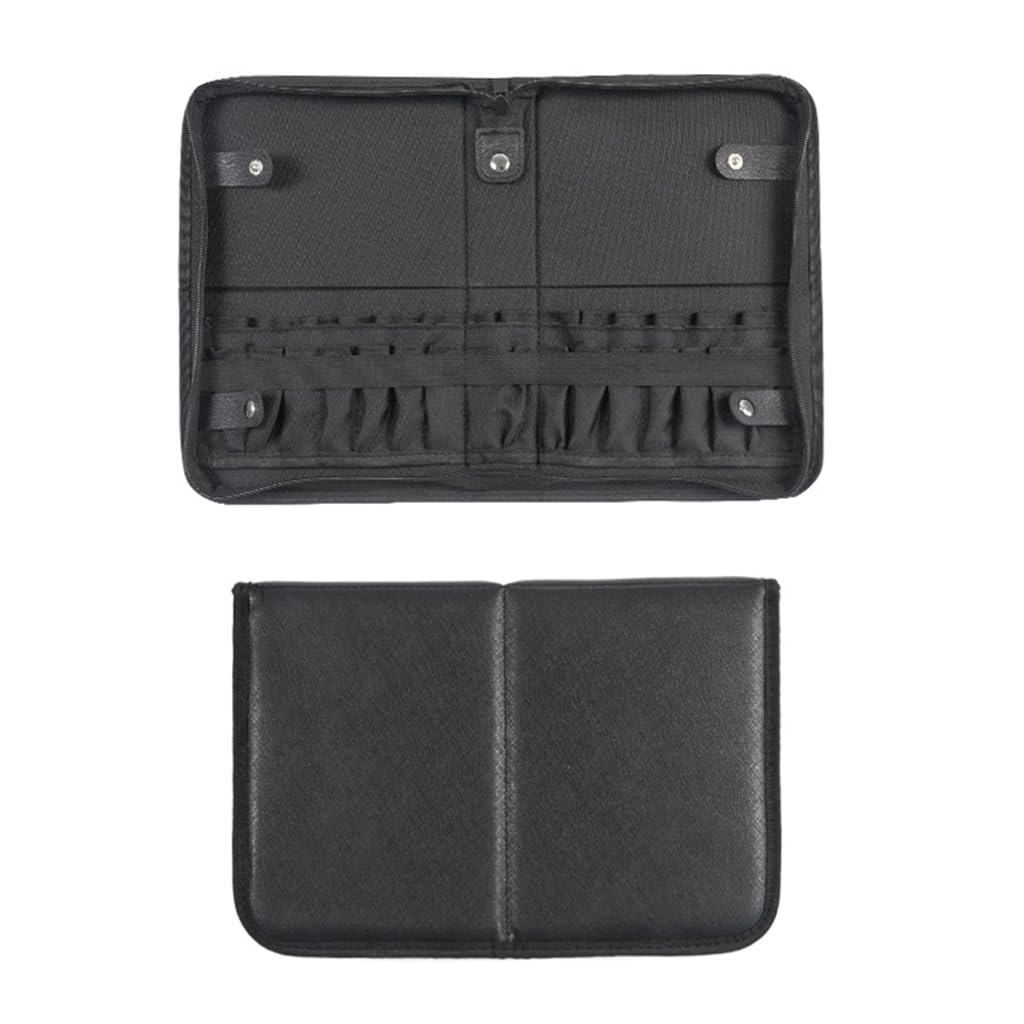 MAYCREATE® Makeup Brush Holder Bag Portable Travel Makeup Organizer Bag is a foldable and durable cosmetic storage case designed to store a complete set of makeup brushes in an organized way. Made with a wear‑resistant PU cover and polyester lining, it provides 29 elastic sleeves to keep brushes classified and protected from dust and water. Its full‑open zipper design and snap buttons allow easy access and standing use on a dressing table, while the foldable structure ensures convenient storage and travel portability. Suitable for both professional makeup artists and daily users, this MAYCREATE® organizer ensures cleanliness, accessibility, and lasting durability during makeup storage or travel.