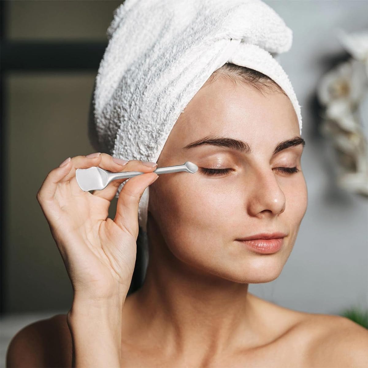 MAYCREATE Pore Prep Tool is a stainless-steel blackhead remover and pimple extractor designed to assist in effective facial care for both women and men. Featuring a dual-head skin scrubber, it allows precise extraction, with the smaller end reaching delicate areas such as the nose and the broader side addressing the chin and forehead. The compact and portable form makes it practical for travel or daily use, while its hygienic stainless-steel build ensures safe, durable performance. When used after cleansing or steaming, it supports better pore preparation and improved skincare absorption. Reliable and reusable, this MAYCREATE tool helps maintain clear, healthy-looking skin with professional-grade care results.