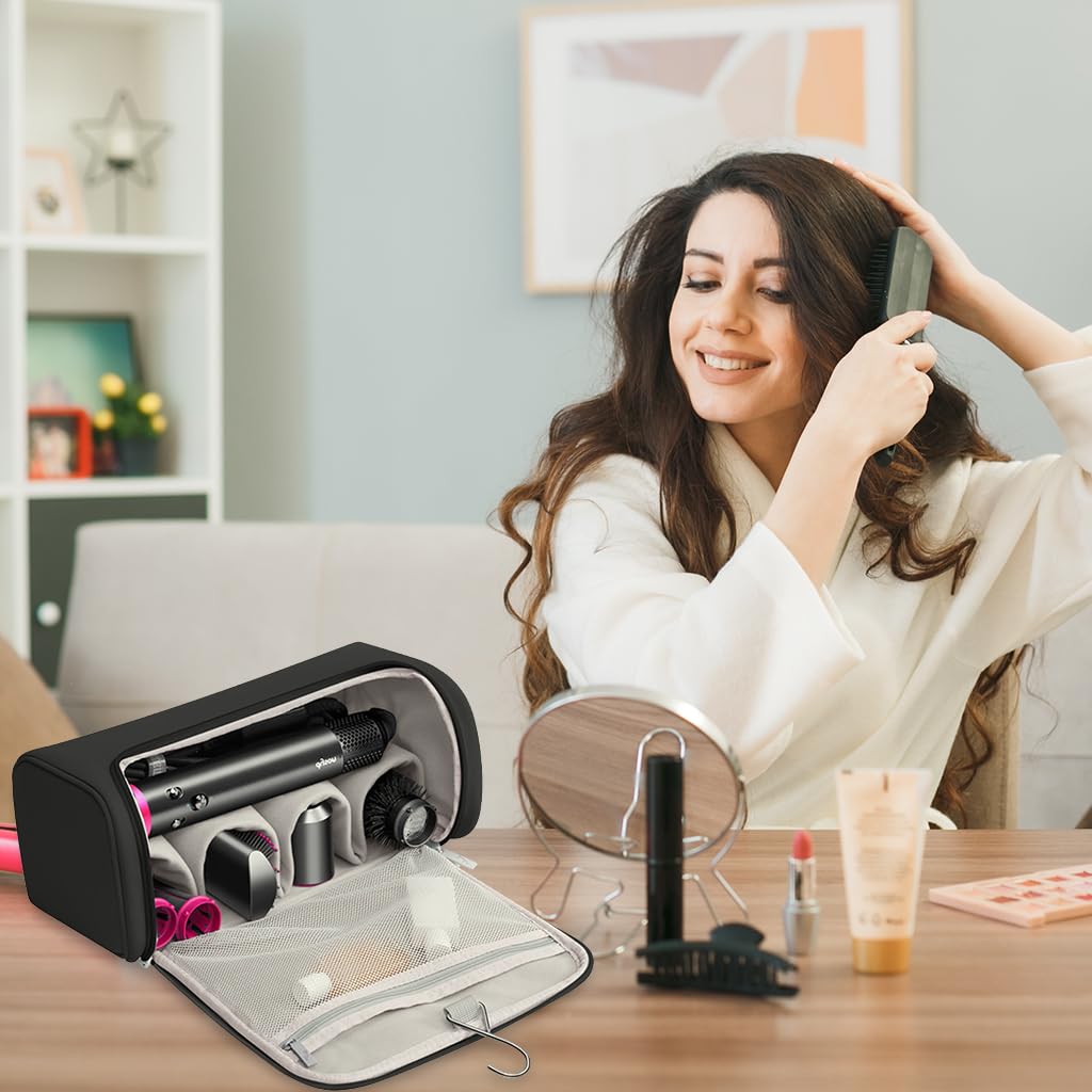 MAYCREATE Travel Storage Bag for Dyson Airwrap featuring 5 Compartments and Hanging Hook | Waterproof PU Organizer for Hair Tools