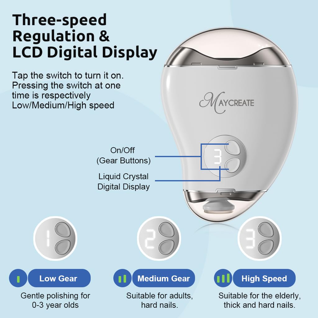 MAYCREATE USB Baby Nail Trimmer with LED Light featuring Dual Head 3 Speeds Safe Filer for Kids and Adults
